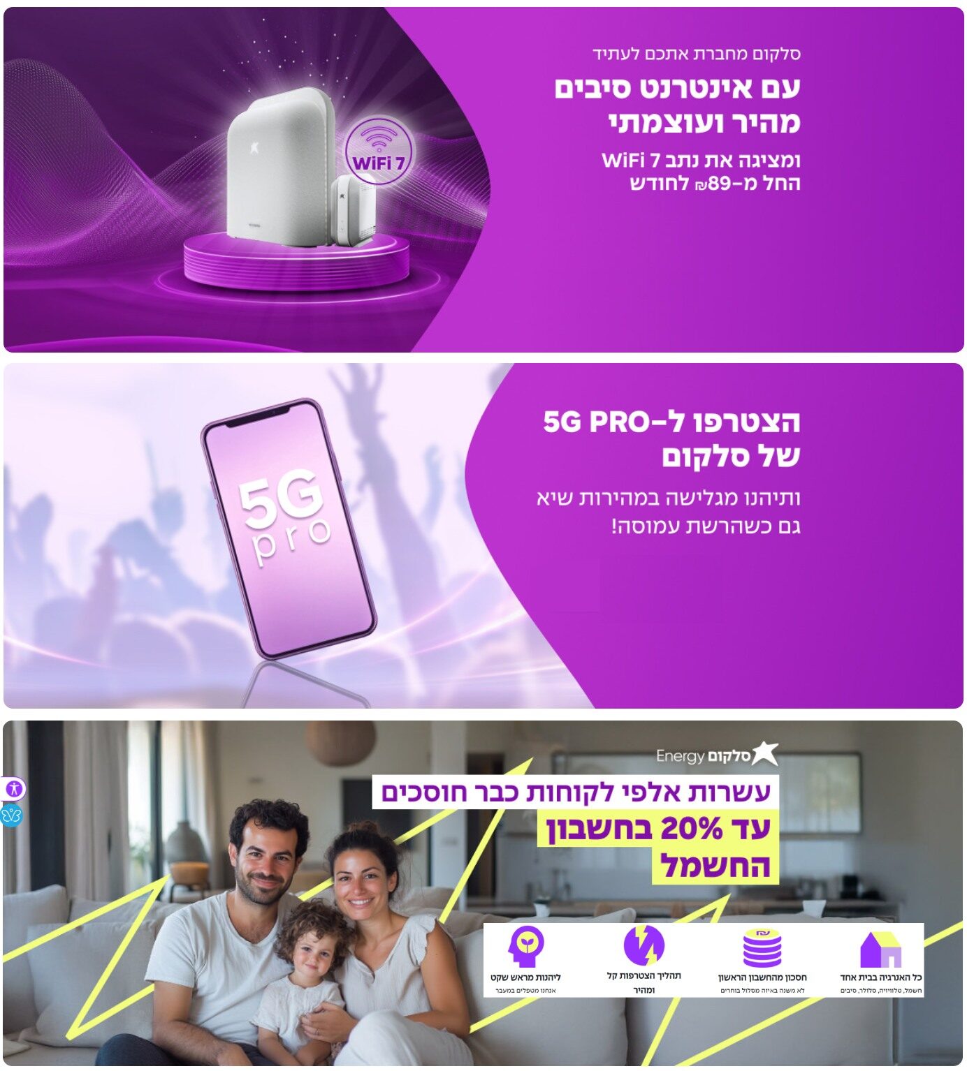 בין השאר, ניתן למצוא בין מגוון השירותים שמציעה סלקום חבילות סלולר משתלמות ומקיפות, שיענו על כל צורך קיים או עתידי שעשוי להתעורר – בין אם מדובר בדקות שיחה לארץ או לחו"ל, הודעות SMS או חבילה הכוללת את היישומון של סלקום tv עבור הנייד. סלקום סלולר מאפשרת לכם להוציא את הטוב ביותר מהמכשיר הנייד שלכם, בעזרת הצעות כמו eSIM המחבר את הטלפון הנייד לשעון החכם, הרחבת חבילות גלישה ועוד.